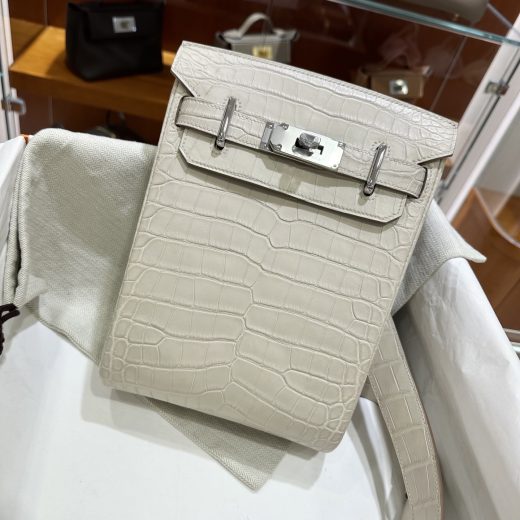 Hac A Dos DDMode Factory Hac a Dos Matte Alligator Crocodile 8L Ice White 18cm Silver Hardware Full Handmade December 16, 2025 0