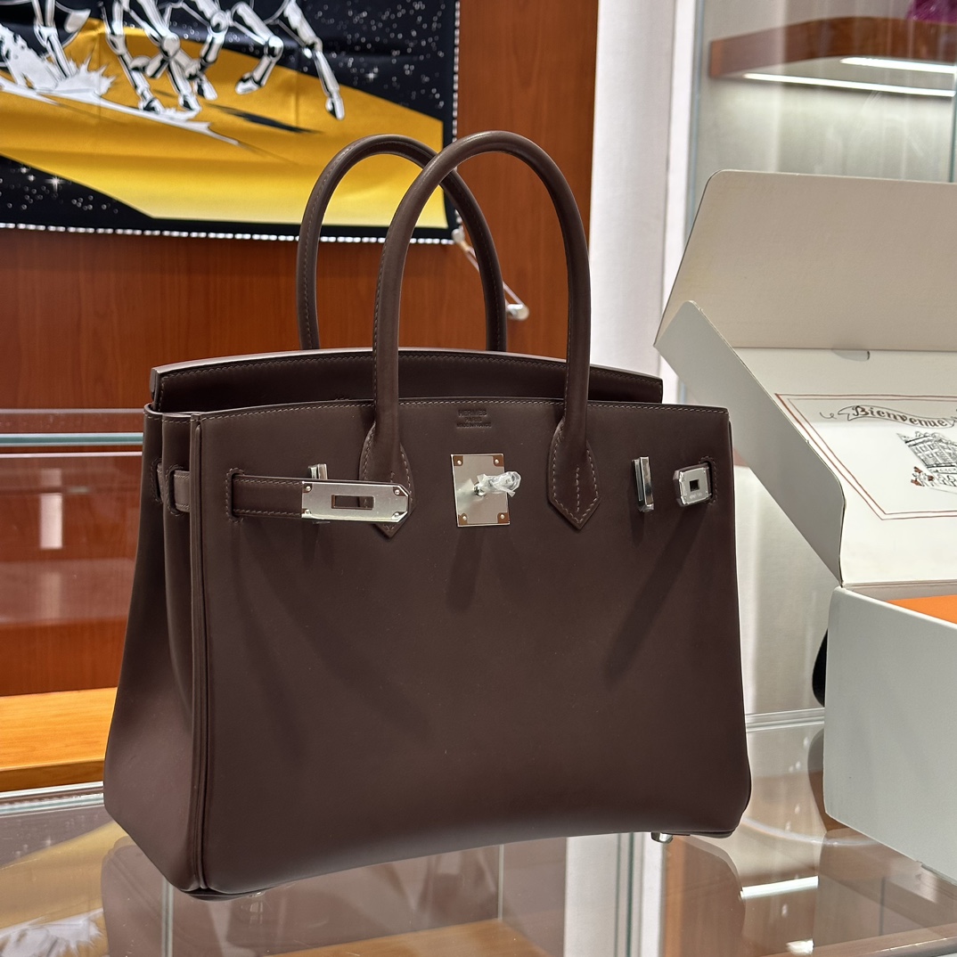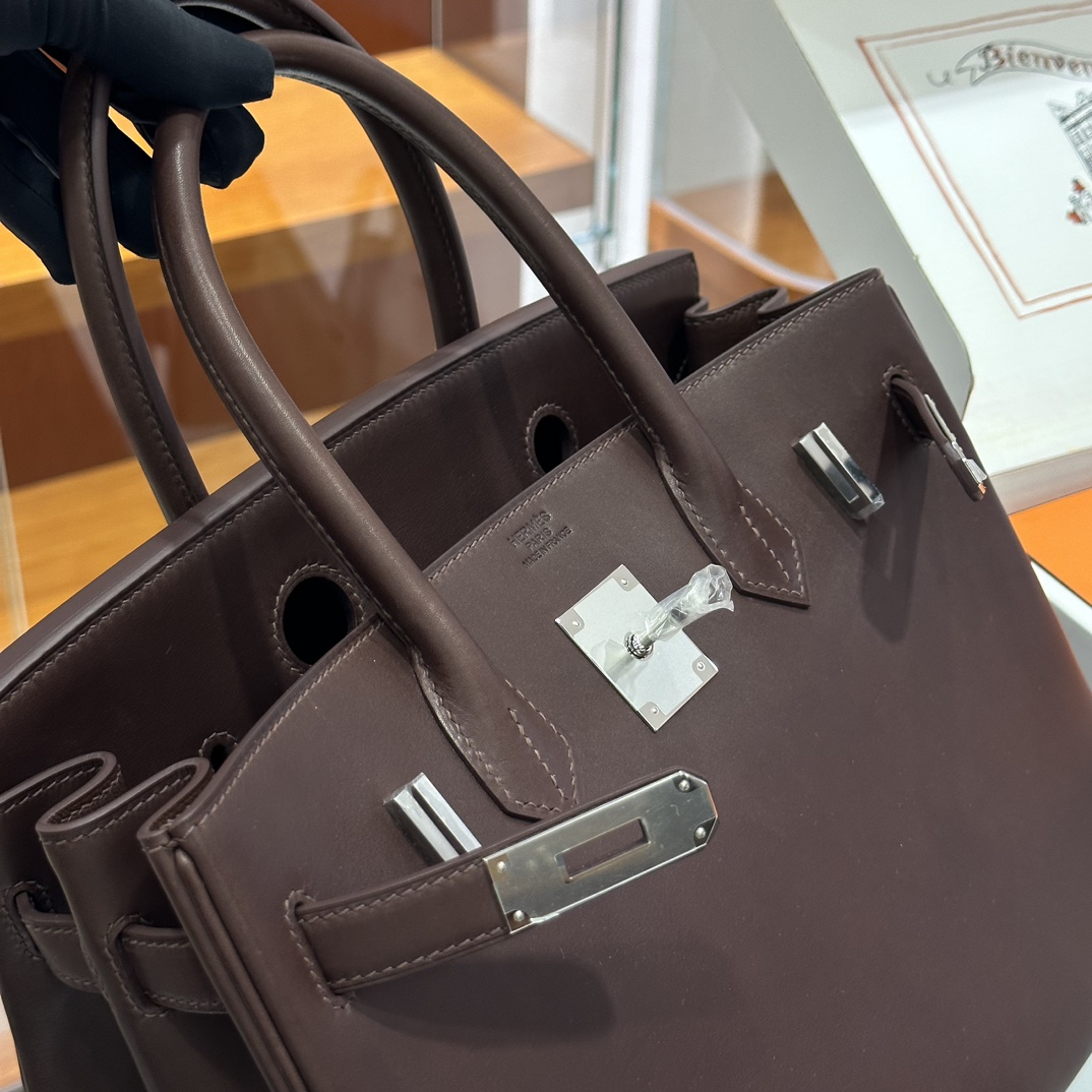 DDMode Birkin Barenia vintage Leather Ebony Color Silver Hardware 30cm Full Handmade