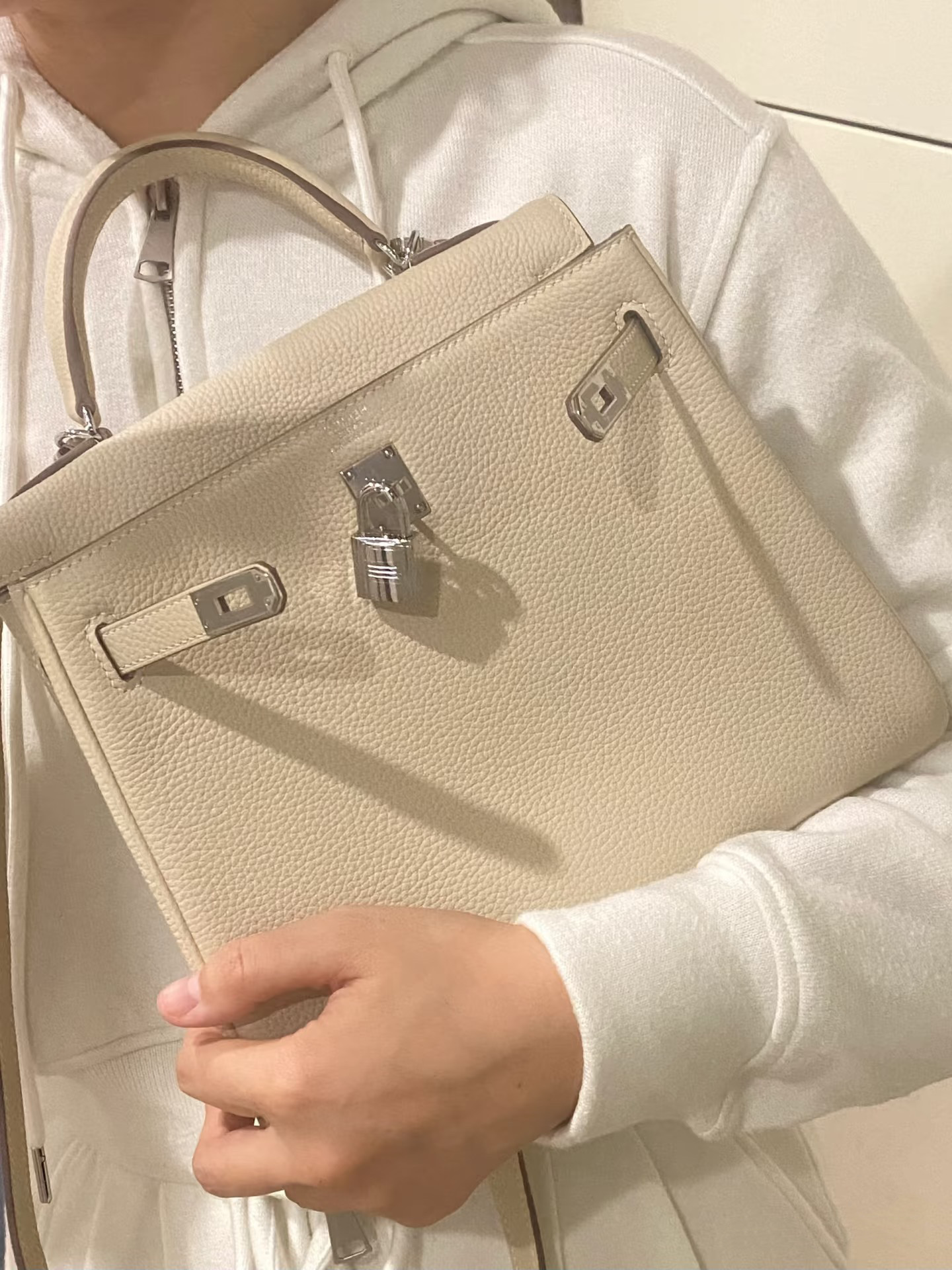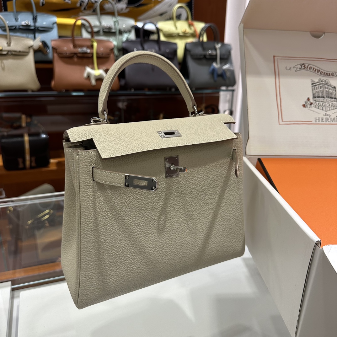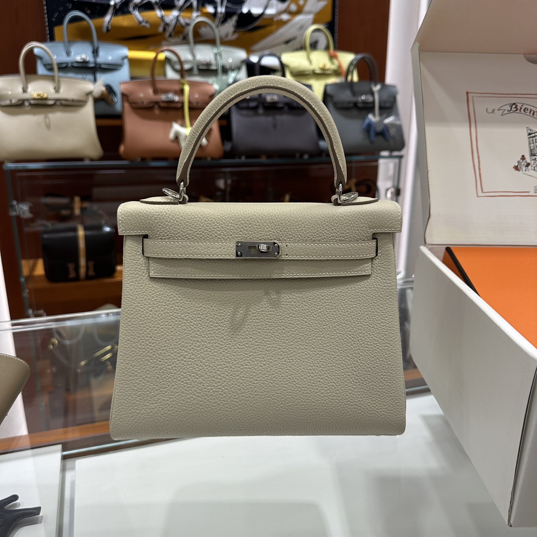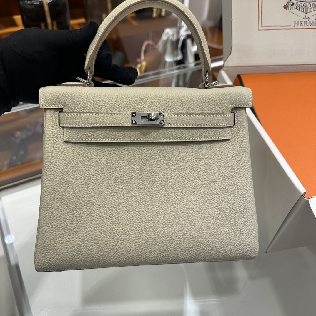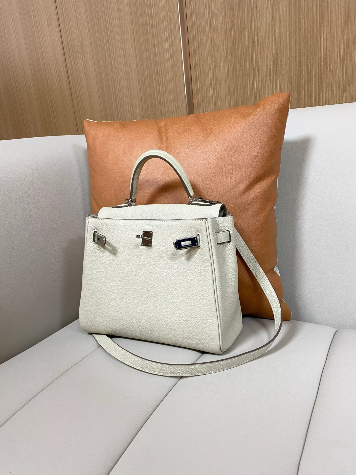 DDMode Kelly Togo Leather Cream White Silver Hardware 25cm Full Handmade