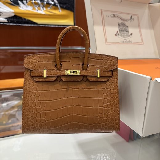 Birkin Birkin 20CM DDMode Factory Brikin Matte Alligator Crocodile Golden Brown Gold Hardware 20cm Full Handmade November 9, 2025 0