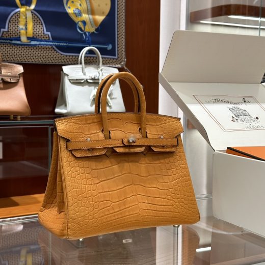 Birkin Birkin 25CM DDMode Factory Brikin Matte Alligator Crocodile Orange Brown Silver Hardware 25cm Full Handmade November 9, 2025 0