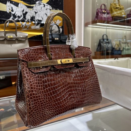 Birkin Birkin 30CM DDMode Factory Brikin Shiny Porosus Crocodile CK33 Honey brown & CK17 tobacco color Gold Hardware 30cm Full Handmade November 13, 2025 0