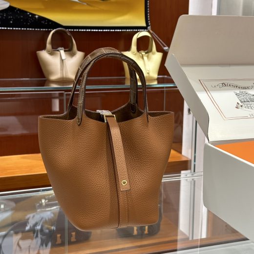 Picotin Picotin 18CM DDMode Factory Picotin Touch Togo & Matte Crocodile Golden Brown Gold Hardware 18cm Full Handmade November 28, 2025 0