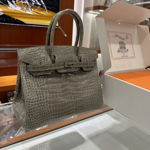 Birkin Birkin 30CM DDMode Factory Brikin Shiny Crocodile Turtledove Grey Silver Hardware 30cm Full Handmade November 13, 2025 0