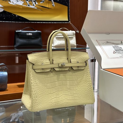 Birkin Birkin 25CM DDMode Factory Brikin Matte Alligator Crocodile Light Yellow Silver Hardware 25cm Full Handmade November 13, 2025 0